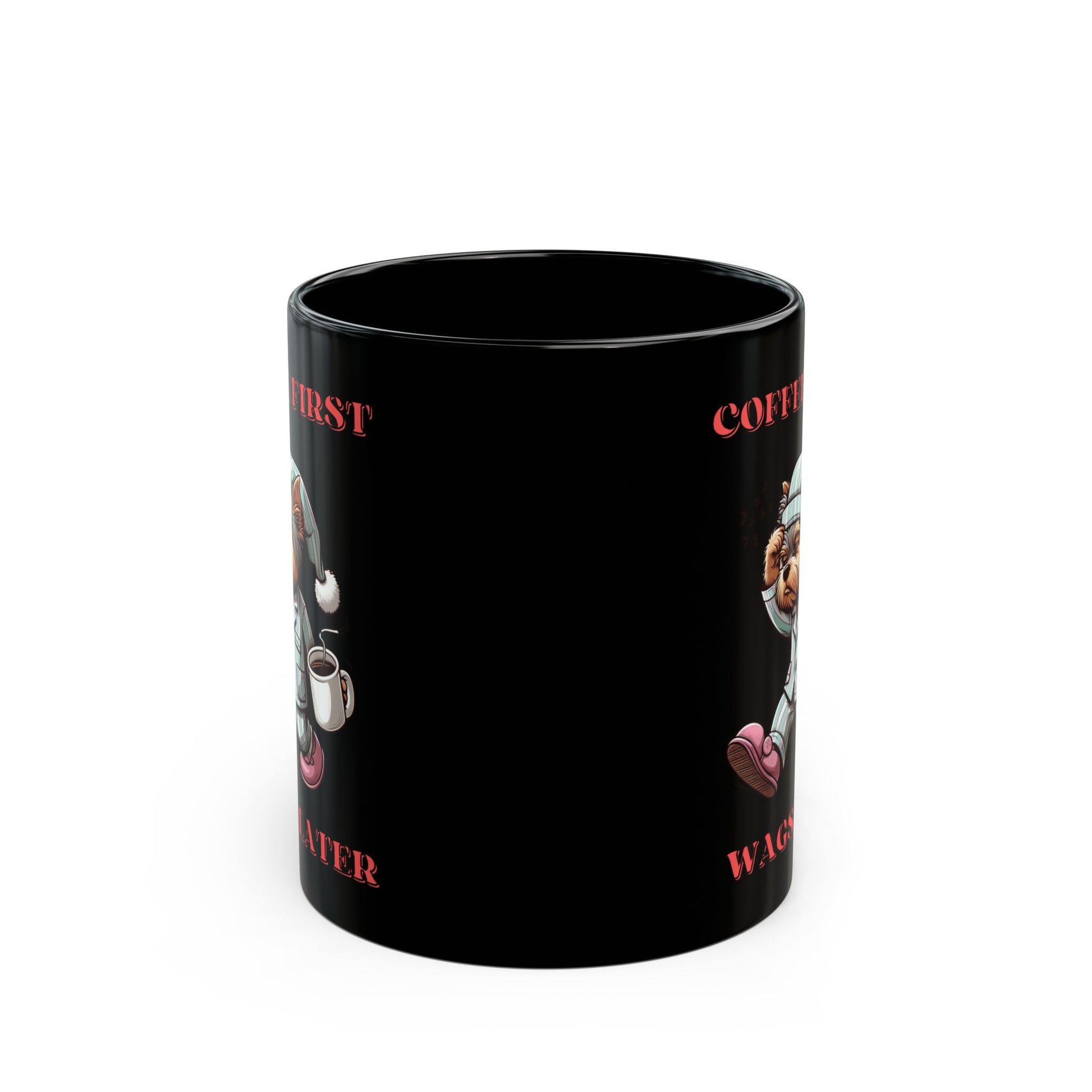 Coffee First Wags Later: 11oz Black Ceramic Mug