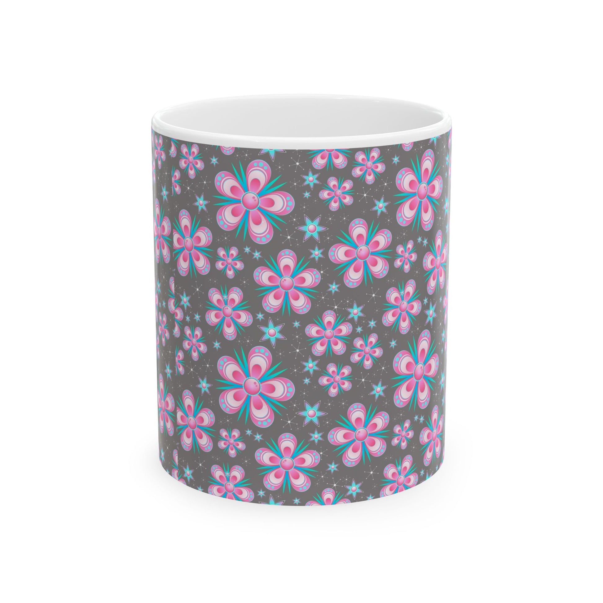 Pink Floral Ceramic Coffee Mug | 11oz Spring Accent Cup & Gift