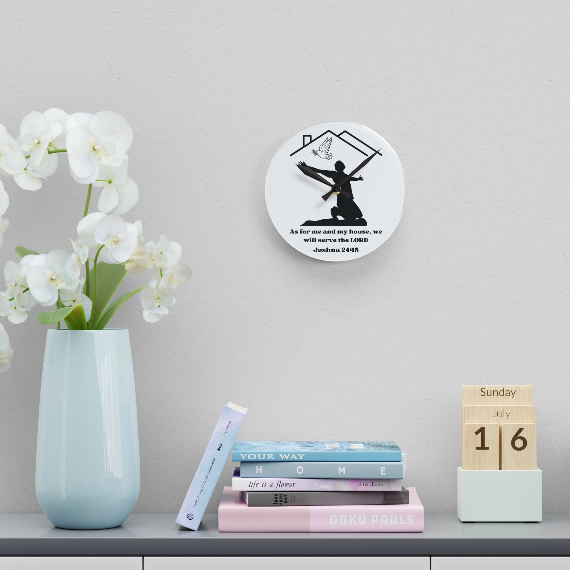 Joshua 24:15 Inspirational Acrylic Wall Clock – Timeless Wisdom for Your Home