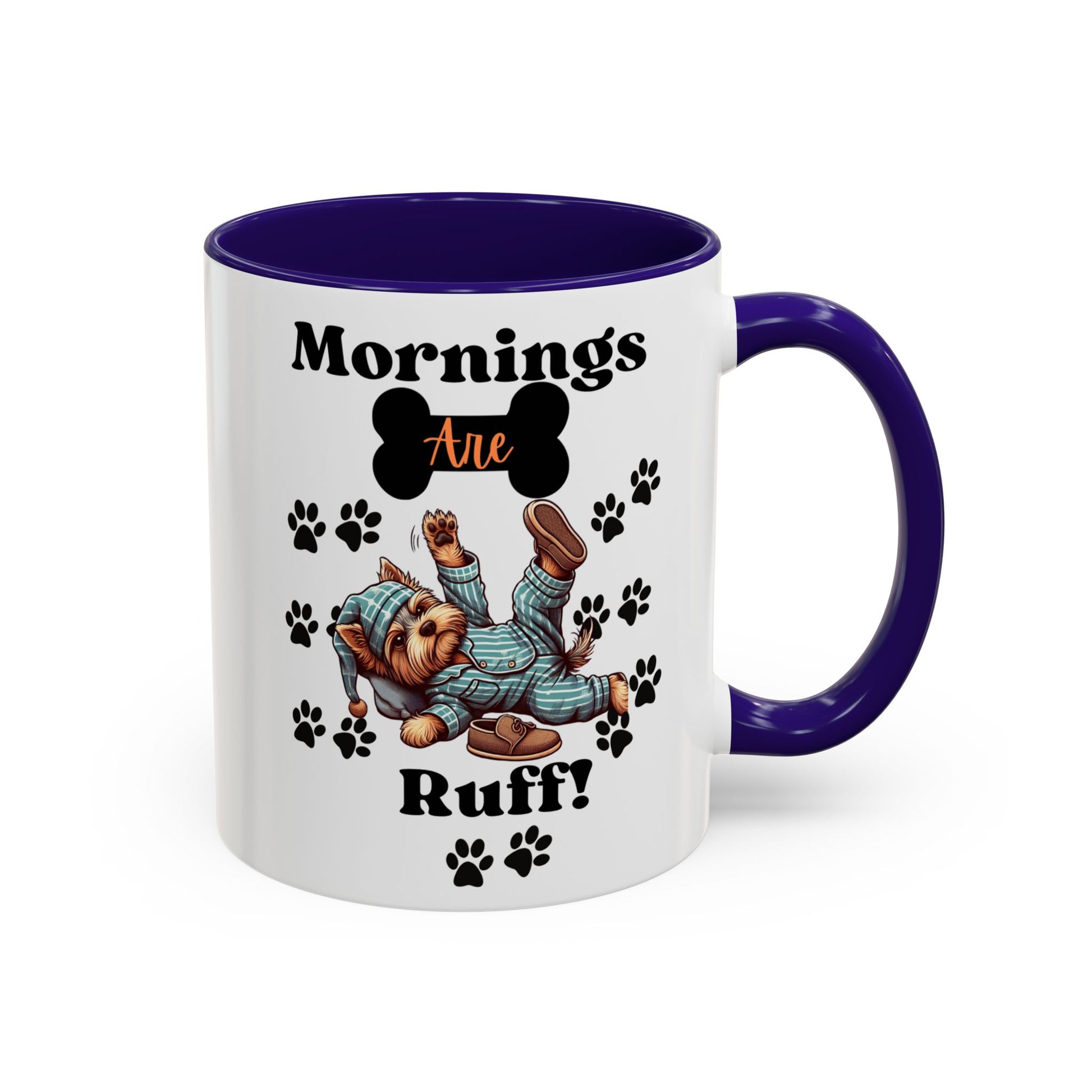 Elevate your morning routine with our 'Mornings Are Ruff' 11oz two-toned coffee mug. Available in 12 vibrant colors, these mugs bring a custom touch to your kitchen. The front and back feature the playful slogan, making it a delightful addition to your daily pick-me-up ritual. Crafted from 100% glossy ceramic with an easy-grip C-shaped handle, these mugs combine style and functionality. Choose your favorite color and enjoy your favorite beverage in this high-quality, personalized mug.